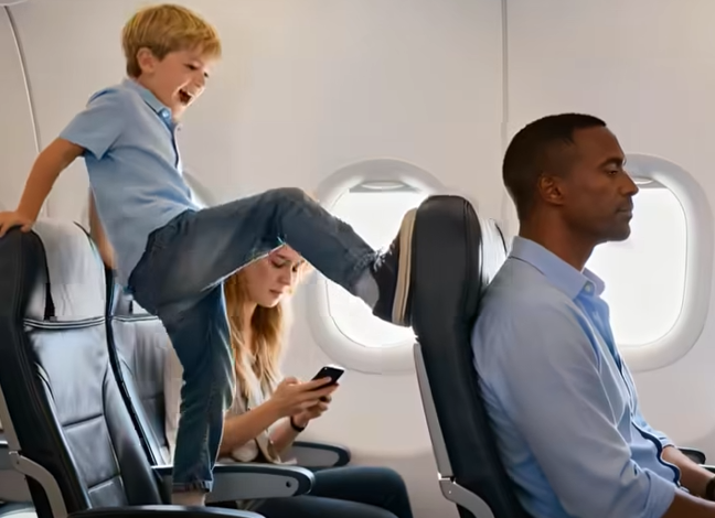I turned around fully this time. “Excuse me,” I said, keeping my voice calm. “Would you mind asking your son not to kick the seat?”