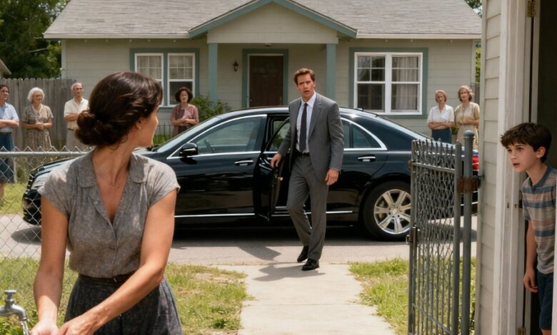 So when a sleek silver Bentley rolled down Cedar Street one warm afternoon, every curtain in the neighborhood flew open. Elena was sweeping her porch, Jamie playing with toy planes in the dirt. She froze as the car stopped in front of her weather-beaten house, gleaming like something from an entirely different world.