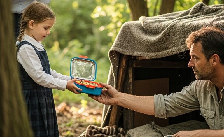 Every day, a 7-year-old girl tucked her lunch away instead of eating it, Curious, her teacher followed her during break, and what she saw behind the school forced her to make an emergency call