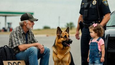 The little girl’s voice, barely a whisper, sliced through the monotonous drone of Sunday morning traffic. Officer Daniel Brooks, clocking off his night shift, was driving his daughter, Lily, home when her small hand shot out, pointing. On the curb near a gas station, a man sat, utterly spent. He…
